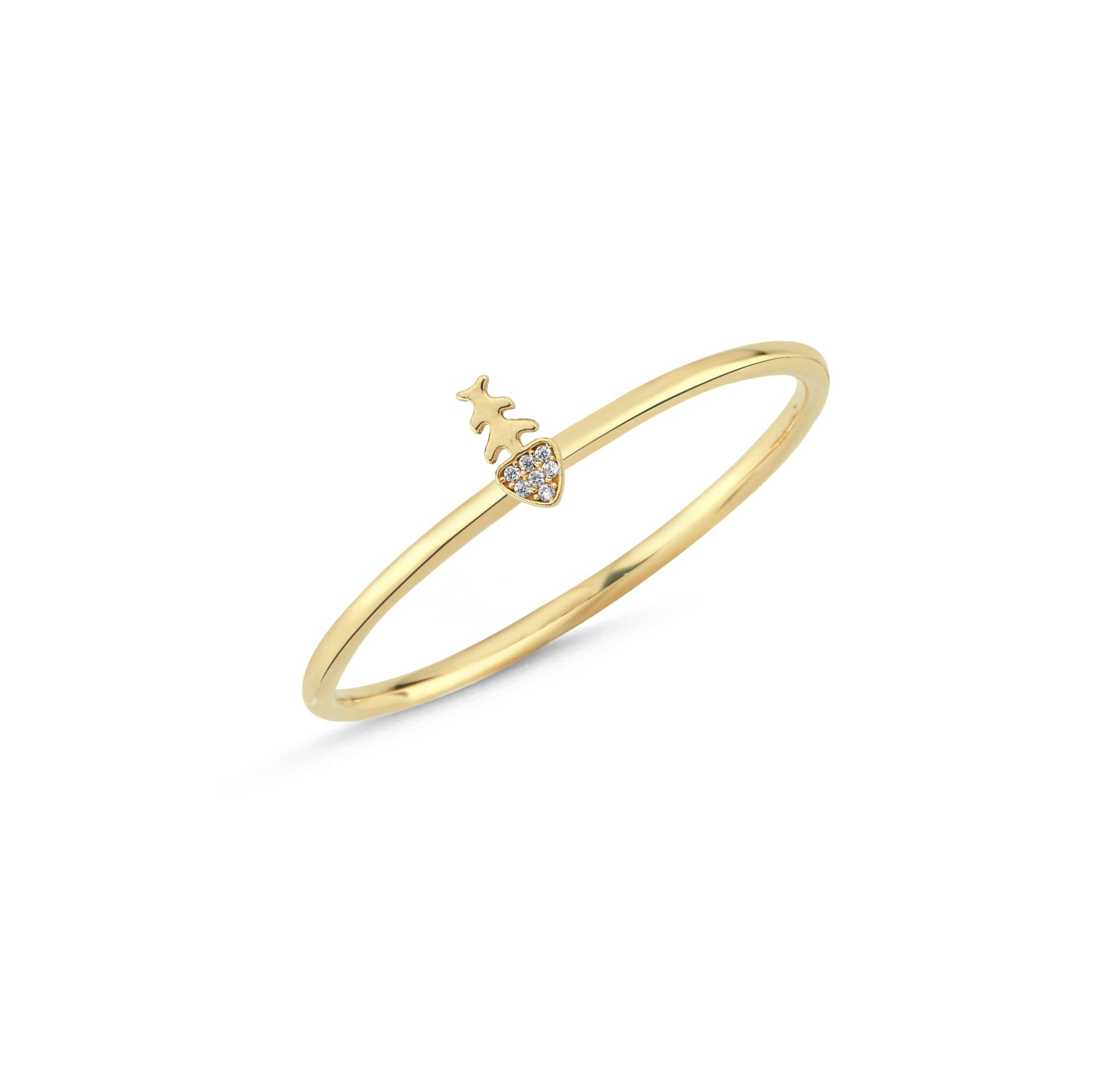 Pavé kalp ve alev detayı. İnce bantta cesur bir aşk imzası.