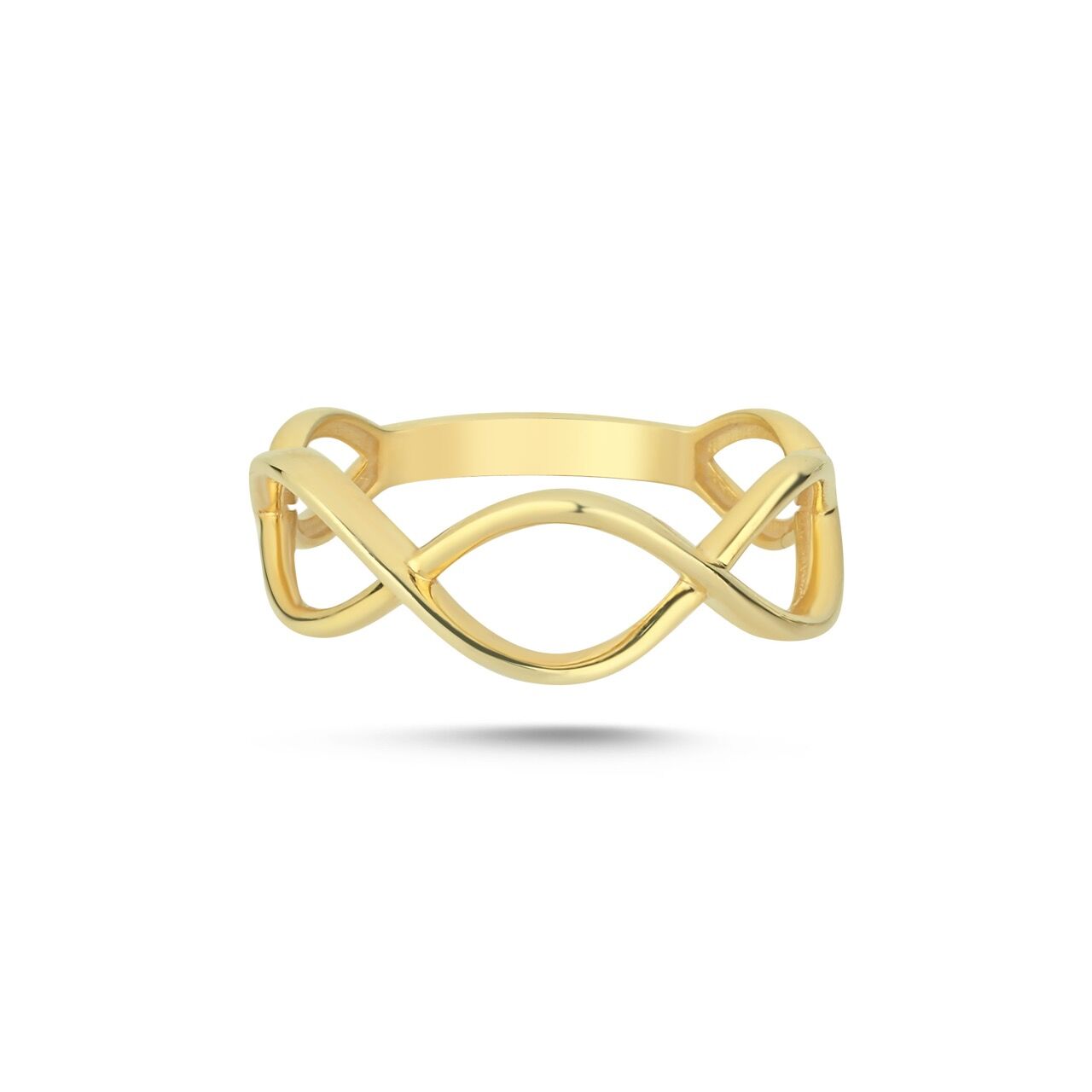 Akıcı çizgilerle iç içe geçen formu, süreklilik ve denge fikrini tek bir silüette buluşturur. Açık yapı tasarımı sayesinde hafif bir duruş sunarken, pürüzsüz altın yüzey modern ve rafine bir etki yaratır. Minimal detaylarla güçlü bir ifade kuran bu yüzük; günlük kullanımda sade bir imza, katmanlı kombinlerde ise karakterli bir tamamlayıcıdır.
