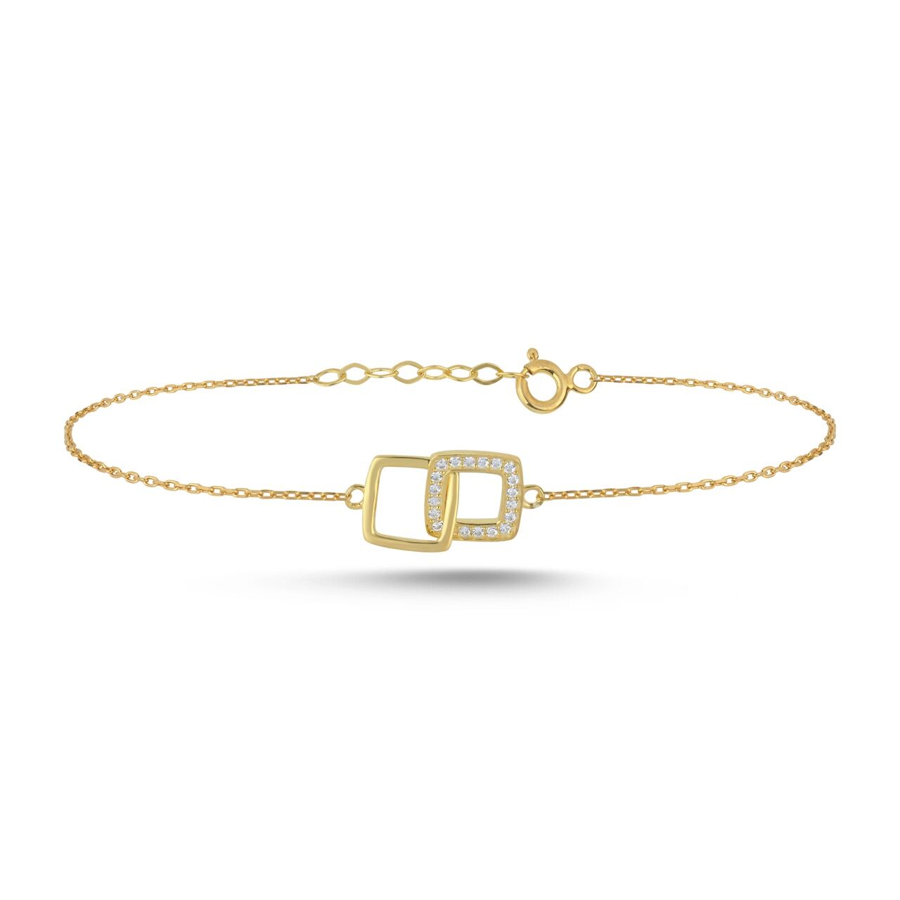 Birbirine geçen iki kare form, denge ve süreklilik fikrini net çizgilerle yorumlar. Yalın altın yüzey ile taş diziliminin kontrollü birlikteliği; abartısız ama karakterli bir etki yaratır. Günlük kombinlerde sakin bir imza, özel anlarda ise ölçülü bir vurgu olarak öne çıkar.
