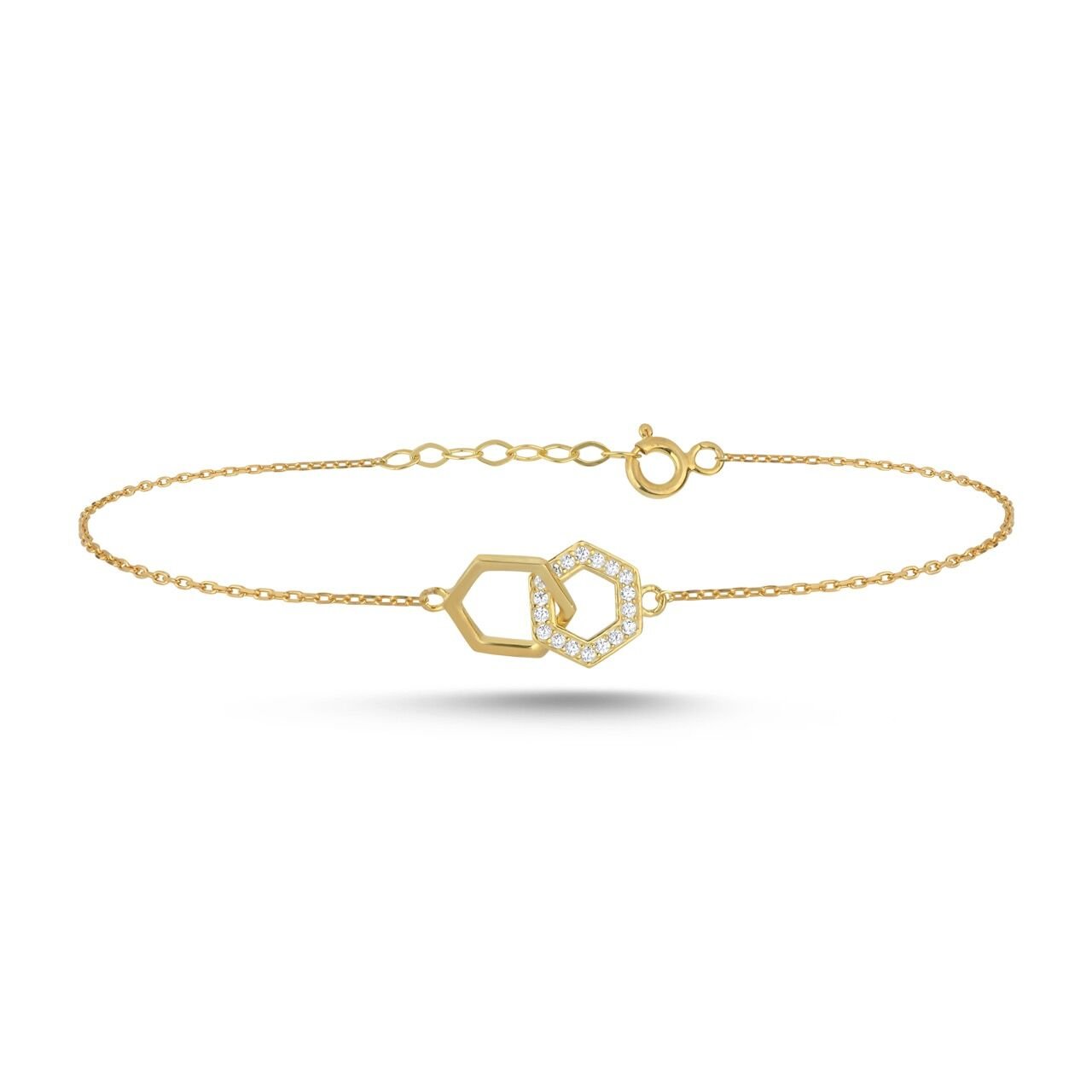 Linked Hexagon Altın Bileklik