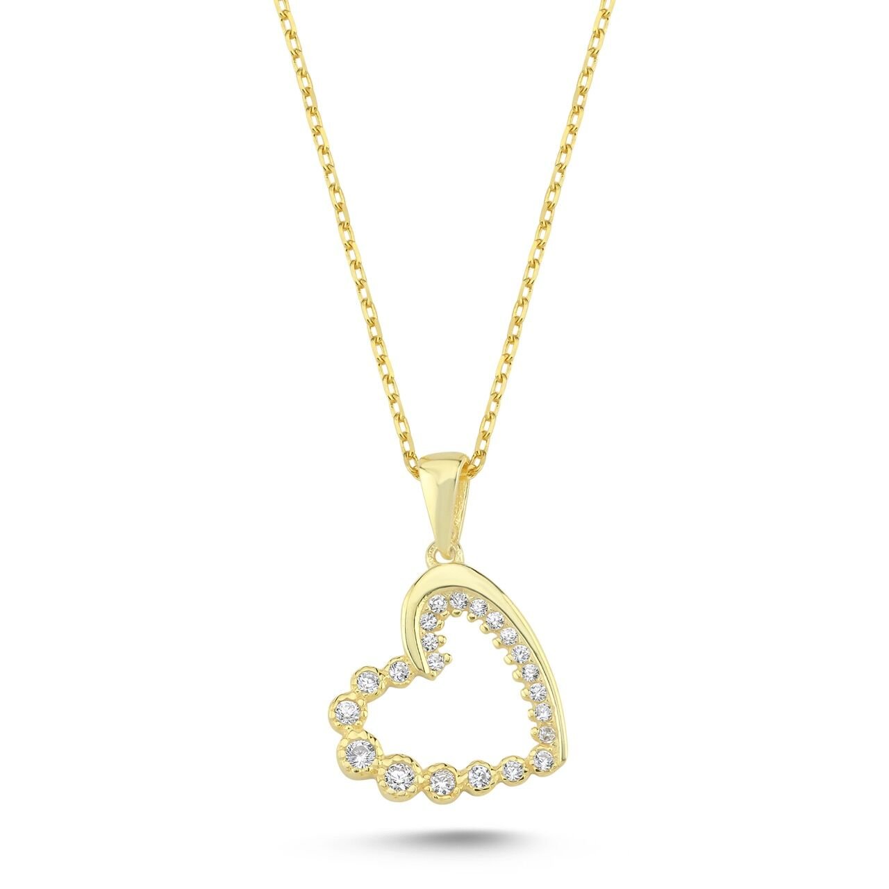 Açık kalp formu ve çevresini saran taş dizilimiyle tasarlanan bu kolye, klasik bir sembolü modern bir yorumla sunar. Asimetrik yapısı sayesinde hafif ve zarif bir görünüm oluşturur; boyunda sade ama dikkat çekici bir etki bırakır. Günlük kullanım için ideal, zamansız bir parça.